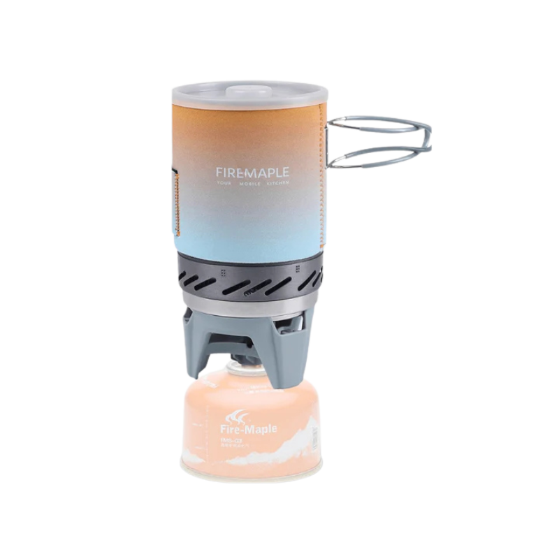 Fire-Maple süsteemiga saad kaasa 1-liitrise anodeeritud alumiiniumist keedupoti, mille sees on mõõtejooned täpseks vee või toidu koguse jälgimiseks. Poti põhja integreeritud soojusvaheti ja tuulekaitse tagavad ühtlase kuumuse ja efektiivse gaasikulu isegi tuulistes oludes.