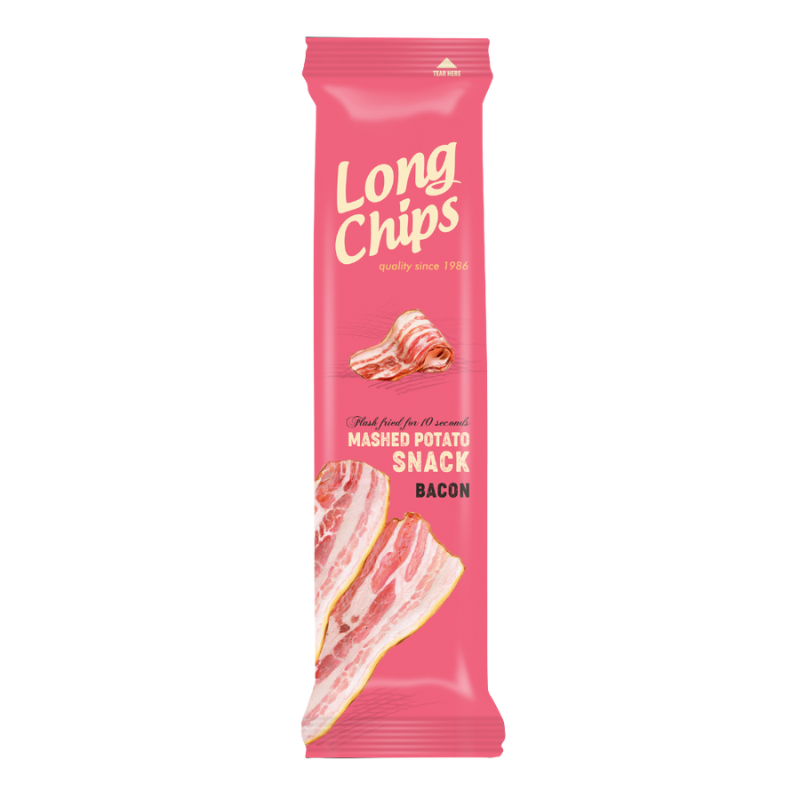 Avasta krõbedate kartulivahvlite uus tase – Long Chips toob Sinu lauale hõrgu ja suitsuse peekoni maitse, mis sobib nii pidulikuks ampsuks kui ka igapäevaseks snäkiks.
