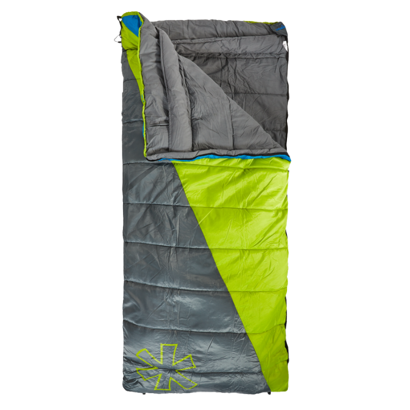 • Parempoolne tõmblukk koos kaitselindiga hoiab ära kanga sattumise luku vahele ning võimaldab kahe magamiskoti ühendamist (vasak + parem).