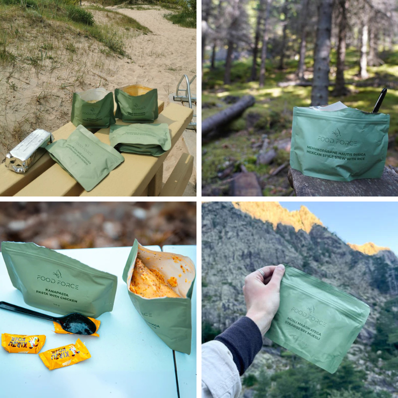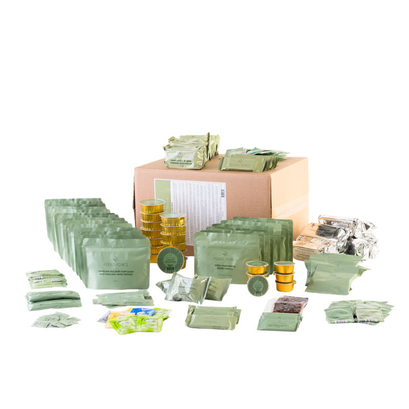 Terve nädala toiduvaru FOOD FORCE on loodud selleks, et tagada sulle täisväärtuslik toidulaud ka siis, kui värskest toorainest toidu valmistamine ei ole võimalik. See on ideaalne lahendus hädaolukordadeks, matkamiseks, merereisiks või lihtsalt varuks juhuks, kui vajad kiiresti toitvat ja maitsvat einet. Komplekt sisaldab ühe inimese nädalast toiduvaru – 7 hommikusööki ja 14 pearooga.