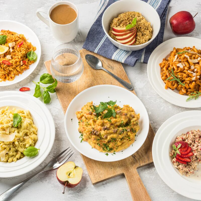 Ühe nädala toidupakk  (21 rooga) sisaldab: 2x müsli maasikatega, 2x puder vanilje, 2x puder õuna-kaneeli, 1x müsli marjadega, 2x kanapasta, 2x kartulihautis veiselihaga, 2x mehhikopärane hautis riisiga, 2x pasta bolognese, 2x praetud riis kanaga, 2x taipärane riis kanaga, 1x pasta carbonara, 1x veiseliha guljašš kartuliga