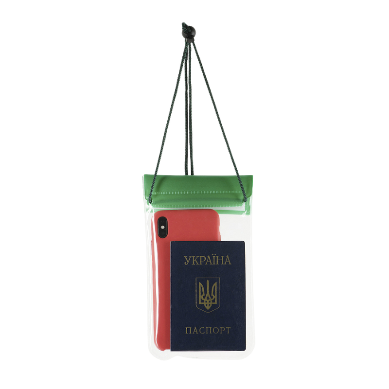 Koti läbipaistev esikülg võimaldab kiiresti ja lihtsalt tuvastada koti sisu ilma seda avamata, mis on eriti mugav kiiretel hetkedel. Läbipaistev materjal aitab hoida esemed nähtaval ja kergesti kättesaadavana. Lisaks on veekindel kott varustatud tugeva kaelapaelaga, mida saab reguleerida vastavalt kandja eelistustele. See võimaldab mugavalt kanda kotti kaelas või kinnitada see vajadusel koti või muu varustuse külge, jättes käed vabaks.
